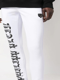 Gothic Plein cotton track pants black/white cotton blend jersey fleece drawstring fastening logo print at the leg logo patch to the front elasticated ankles Made in Italy Composition Cotton 88%, Polyester 12% Washing instructions Hand Wash