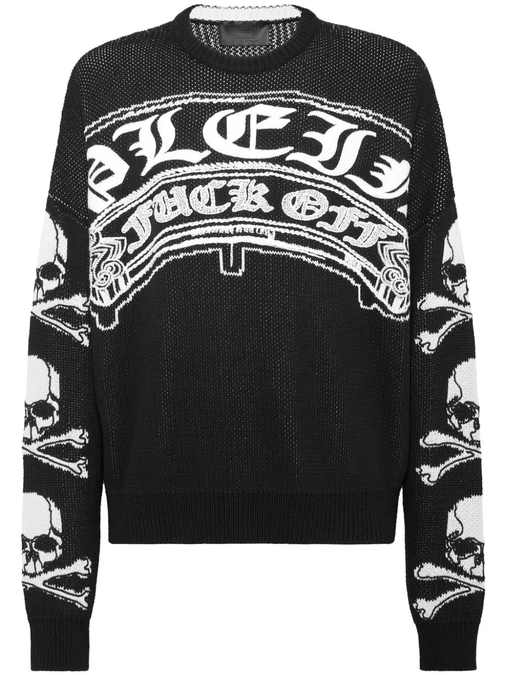 Gothic Plein jumper Highlights - Black/white - Cotton - Knitted construction - Pull-on style - Skull embroidery to the front - Ribbed trim - Crew neck - Long sleeves - Logo patch to the rear Made in Italy Composition Cotton 100%