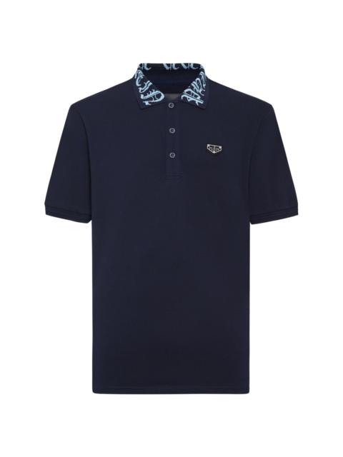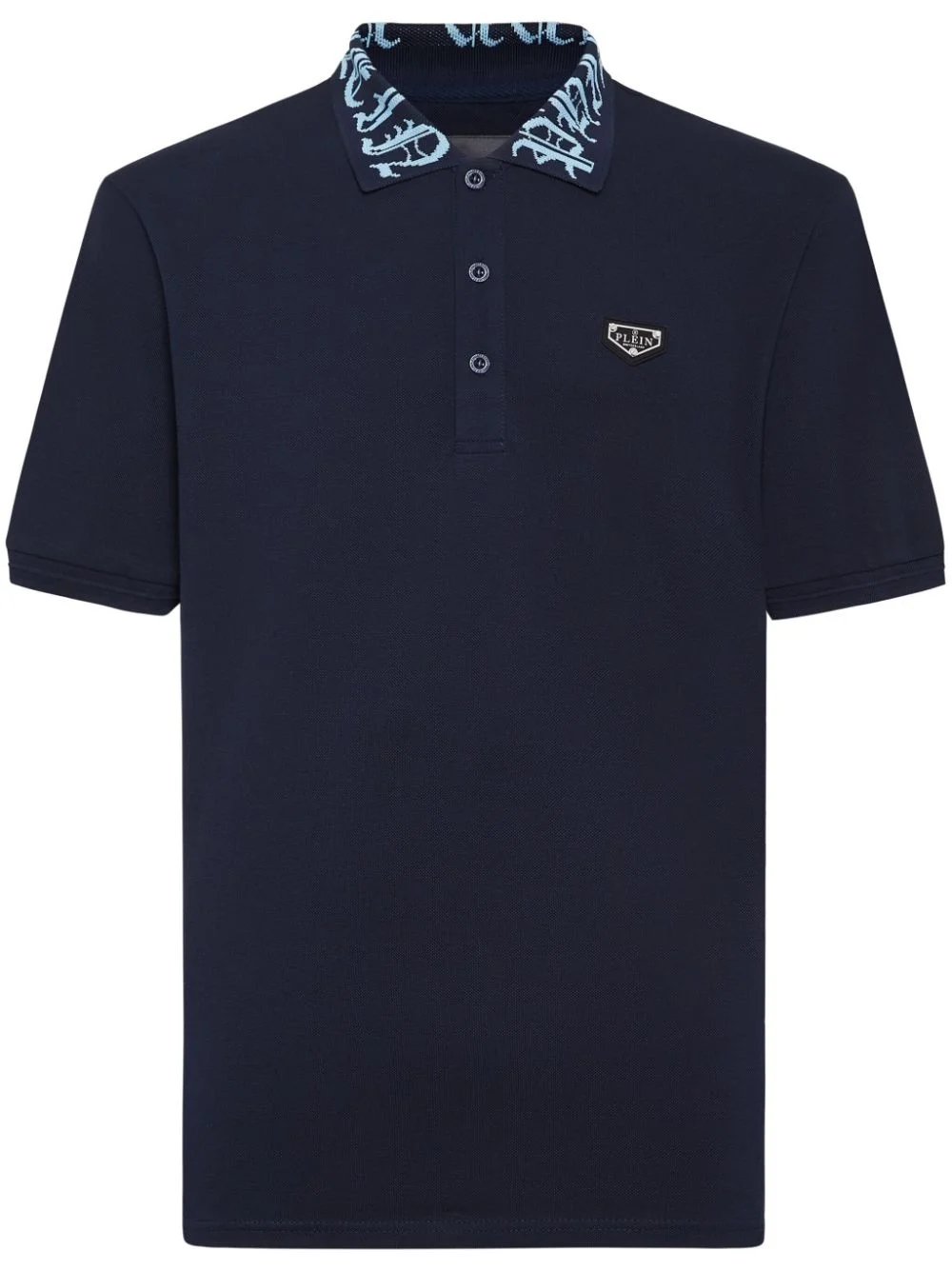 Gothic Plein pique short-sleeve polo shirt Highlights - Midnight blue - Cotton - Pique weave - Short front button fastening - Logo-lettering collar - Logo plaque - Short sleeves - Ribbed cuffs - Straight hem Imported Composition Cotton 100%
