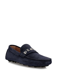 Gothic Plein suede moccasins Highlights - Midnight blue - Calf suede - Silver-tone logo lettering - Round toe - Branded leather insole - Rubber lug sole Made in Italy Composition Outer: Calf Suede 100% Sole: Rubber 100% Lining: Calf Leather 100%