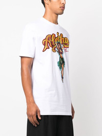 graphic-print crystal-embellished T-shirt white/multicolour cotton graphic print to the front crystal embellishment logo print to the front logo print to the rear logo patch to the rear crew neck short sleeves straight hem Imported Composition Polyester 100% SIZE & FIT Model measurements Height 6 ft 2 in(1.88 m) Bust/Chest 36.61 in(93 cm) Hips 37.79 in(96 cm) Waist 28.74 in(73 cm) FittingInformation Designed to be unstructured, offering a loose fit throughout Made from a midweight non-stretch fabric, this piece offers minimal elasticity when worn This piece fits true to size – take your usual size