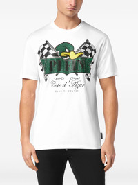 graphic-print T-shirt Highlights - White - Front graphic design - Checkered flags - Logo lettering - Round neckline - Short sleeves - Straight hem - Woven logo label Imported Composition Cotton 100%