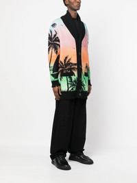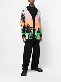 Hawaii-print button-up cardigan black/multicolour lambs wool-cotton blend knitted construction chunky ribbed knit all-over graphic print logo patch to the rear shawl lapels front button fastening drop shoulder long sleeves straight hem Made in Italy Composition Lambs Wool 70%, Cotton 30% SIZE & FIT Model measurements Height 6 ft 1 in(1.85 m) Bust/Chest 31.88 in(81 cm) Hips 33.07 in(84 cm) Waist 26.77 in(68 cm) FittingInformation This piece fits true to size. We recommend you get your regular size Cut for a relaxed fit Made with a mid-weight fabric Washing instructions Dry Clean Only