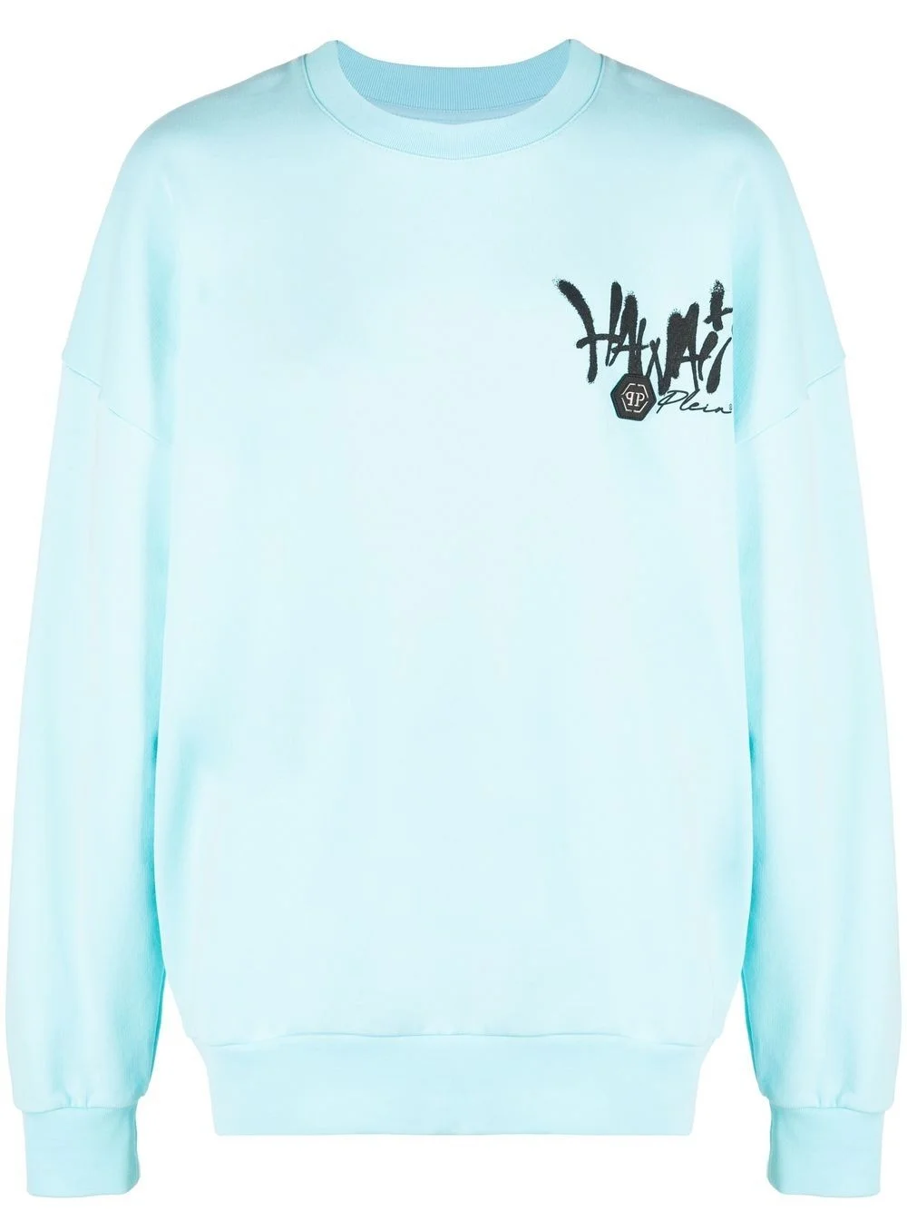 Hawaii-print detail sweatshirt light blue cotton ribbed detailing logo print to the rear Hawaii print round neck long sleeves straight hem Made in Italy Composition Cotton 100% SIZE & FIT Model measurements Height 6 ft 2 in(1.88 m) Bust/Chest 36.61 in(93 cm) Hips 35.82 in(91 cm) Waist 27.95 in(71 cm) FittingInformation Designed for a relaxed fit, this piece allows for comfort and movement when worn Made from a midweight non-stretch fabric, this piece offers minimal elasticity when worn This piece fits true to size – take your usual size Washing instructions Machine Wash