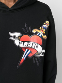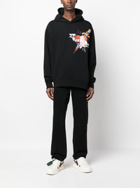 heart & dagger-print hoodie black/multicolour stretch-cotton heart print logo print at the chest logo patch to the rear mini logo tag classic hood long sleeves straight hem Imported Composition Cotton 95%, Elastane 5% SIZE & FIT Model measurements Height 6 ft 1 in(1.85 m) Bust/Chest 31.88 in(81 cm) Hips 33.07 in(84 cm) Waist 26.77 in(68 cm) FittingInformation Designed for a relaxed fit, this piece allows for comfort and movement when worn This piece fits true to size – take your usual size Washing instructions Hand Wash