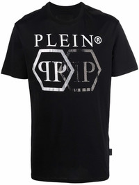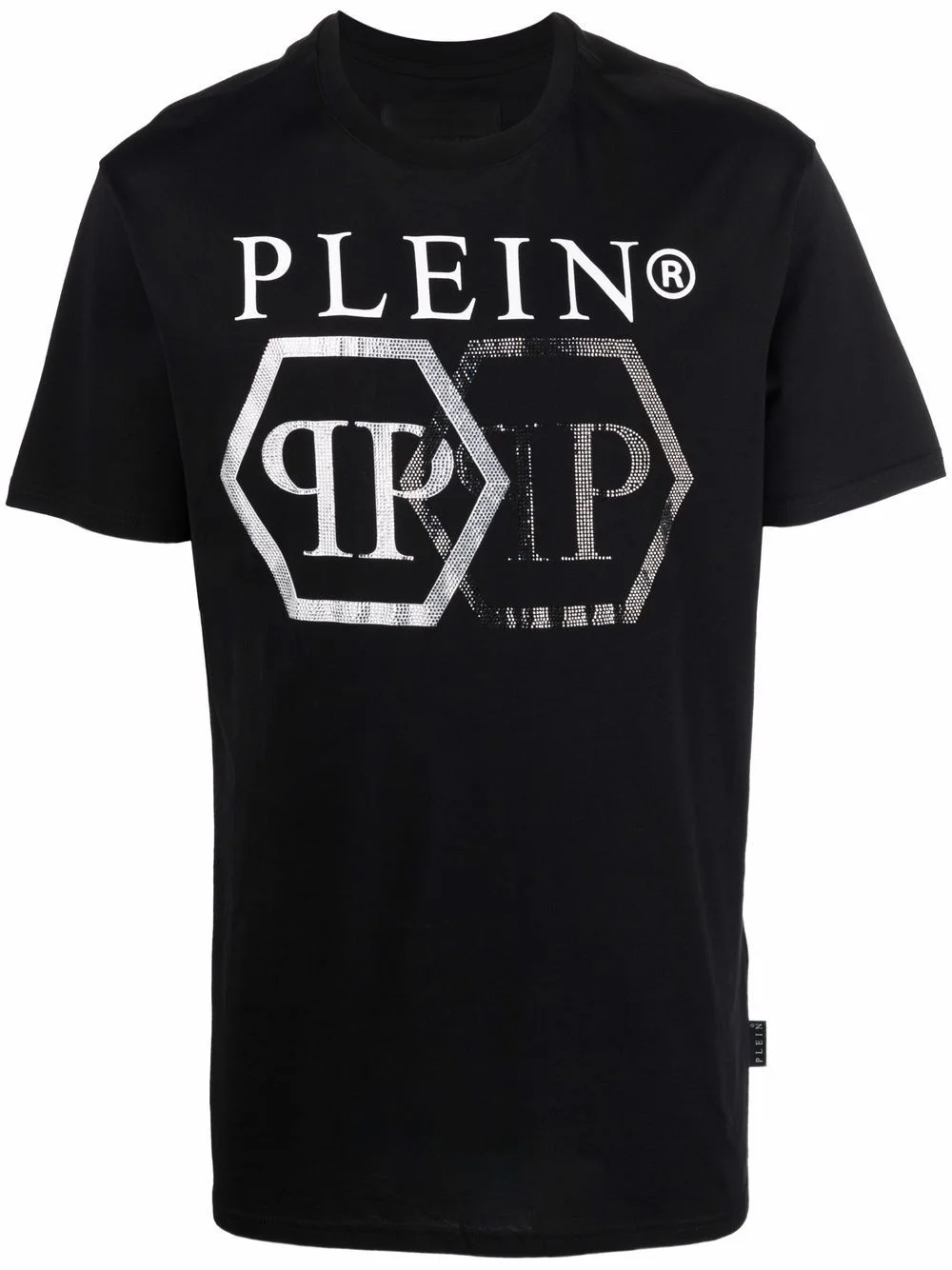 hexagon crystal logo T-shirt black cotton crystal embellishment logo print to the front logo plaque round neck short sleeves straight hem Imported Composition Cotton 100% SIZE & FIT Model measurements Height 6 ft 2 in(1.89 m) Bust/Chest 35.43 in(90 cm) Hips 36.61 in(93 cm) Waist 28.74 in(73 cm) FittingInformation This piece fits true to size. We recommend you get your regular size Cut for a relaxed fit Made with a mid-weight fabric Washing instructions Hand Wash