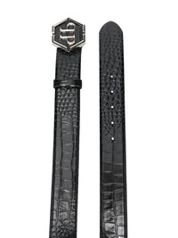 hexagon logo-buckle leather belt black calf leather embossed crocodile effect logo-buckle detail punched holes adjustable fit Made in Italy Composition Calf Leather 100% SIZE & FIT Measurement Maximum Length 41.33 in(105 cm) Minimum Length 37.4 in(95 cm) WIDTH 1.57 in(4 cm)