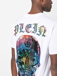 graphic-print cotton t-shirt white cotton logo plaque graphic print to the rear crystal embellishment crew neck short sleeves straight hem Imported Composition Cotton 100% SIZE & FIT Model measurements Height 6 ft 2 in(1.88 m) Bust/Chest 36.61 in(93 cm) Hips 35.82 in(91 cm) Waist 27.95 in(71 cm) FittingInformation This piece fits true to size. We recommend you get your regular size Cut for a relaxed fit Made with a mid-weight fabric