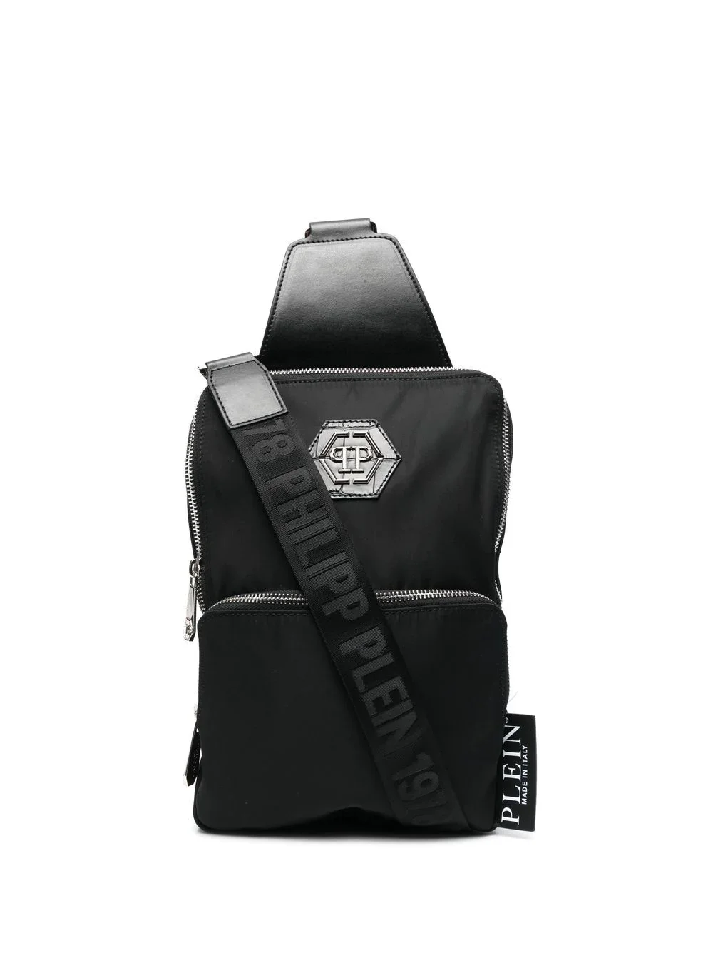 Hexagon logo plaque shoulder bag black calf leather silver-tone hardware top zip fastening adjustable shoulder strap Made in Italy Composition Outer: Calf Leather 100%, Fabric 100% SIZE & FIT Model measurements Height 6 ft 2 in(1.89 m) Bust/Chest 37.79 in(96 cm) Hips 37 in(94 cm) Waist 29.92 in(76 cm) Measurement DEPTH 1.96 in(5 cm) HEIGHT 11.41 in(29 cm) STRAP 20.47 in(52 cm) WIDTH 7.48 in(19 cm)
