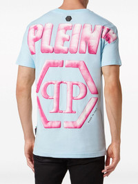 Hexagon logo-print cotton T-shirt Highlights - Light blue/rose pink - Cotton - Logo print at the chest - Logo print to the rear - Logo patch to the rear - Round neck - Short sleeves - Straight hem Made in Italy Composition Cotton 100% Washing instructions Read Manufacturer Guidelines