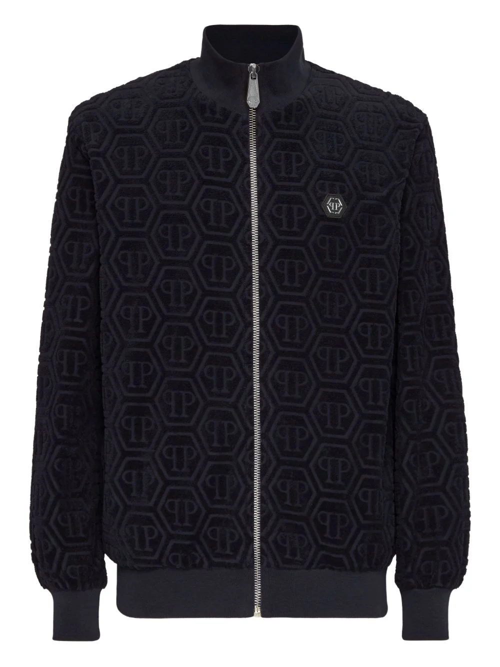Hexagon-logo zip-up jacket Highlights - Navy blue - Hexagon logo pattern - Stand-up collar - Zip fastening - Ribbed cuffs Imported Composition Cotton 100%