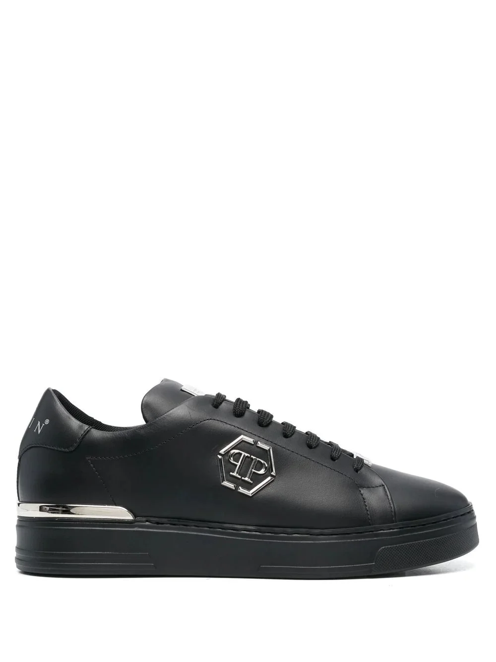Hexagon low-top leather sneakers Hexagon low-top leather sneakers from PHILIPP PLEIN featuring jet black, calf leather, silver-tone hardware, logo patch at the tongue, round toe, front lace-up fastening and flat rubber sole. Made in Italy Composition Leather 100% SIZE & FIT Measurement HEEL 1.37 in(3.5 cm) Sole height 1.18 in(3 cm)
