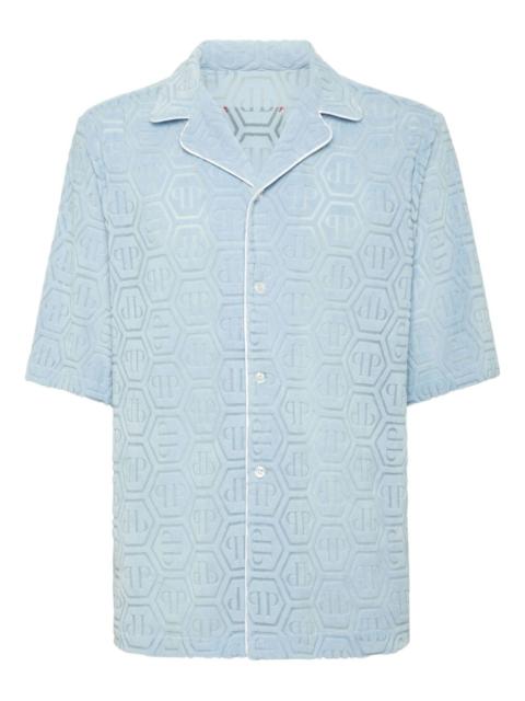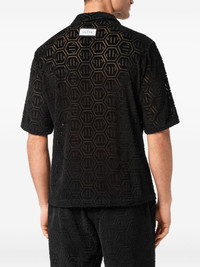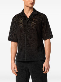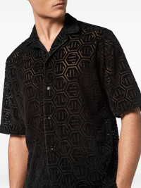hexagon-patterned short-sleeve shirt Highlights - Black - Button-front closure - Classic collar - Embossed hexagon pattern - Relaxed silhouette - Short sleeves - Straight hem - Logo detailing Made in Italy Composition Fabric 100%