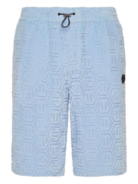 hexagonal-logo shorts Highlights - Black - Embossed hexagonal pattern - Drawstring waist - Side pockets - Knee-length design - Relaxed fit - Signature logo detailing Made in Italy Composition Fabric 100%