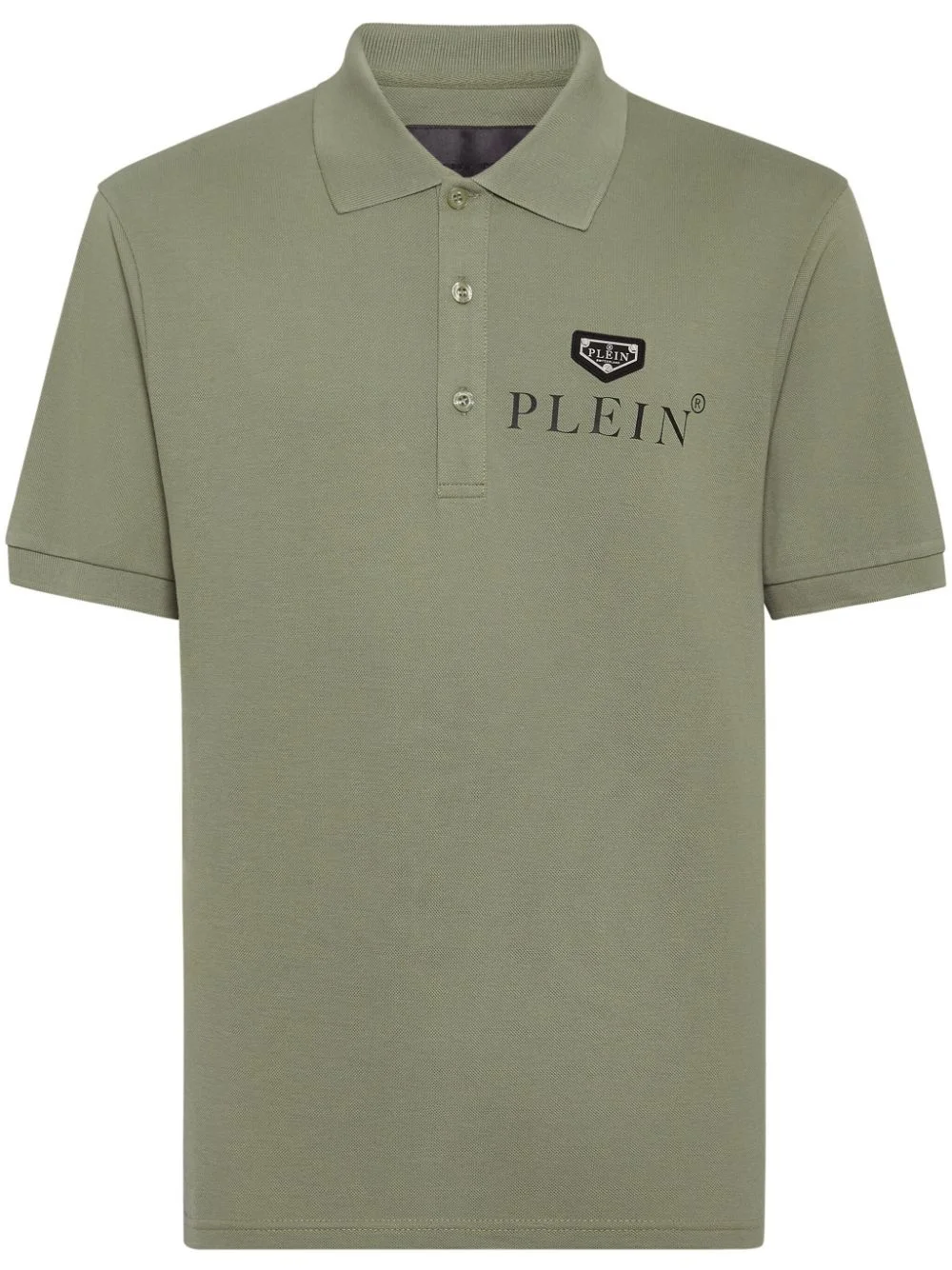 Iconic Plein short-sleeve polo shirt Highlights - Military green - Cotton - Pique weave - Short front button fastening - Polo collar - Logo plaque - Logo print at the chest - Short sleeves - Ribbed cuffs - Straight hem Imported Composition Cotton 100%