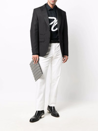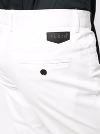 Iconic Plein slim-fit jeans white stretch-cotton logo patch to the rear belt loops concealed front fastening classic five pockets slim cut Made in Italy Composition Outer: Cotton 97%, Spandex/Elastane 3% Lining: Polyester 65%, Cotton 35% SIZE & FIT Model measurements Height 6 ft 1 in(1.85 m) Bust/Chest 37.79 in(96 cm) Hips 37.4 in(95 cm) Waist 30.7 in(78 cm) Washing instructions Dry Clean Only