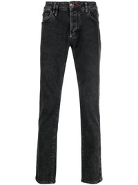 Iconic Plein straight-leg jeans Highlights - Carbon grey - Cotton - Logo patch to the rear - Straight leg - Belt loops - Front button and zip fastening - Classic five pockets Imported Composition Outer: Cotton 98%, Spandex/Elastane 2% Lining: Polyester 65%, Cotton 35% SIZE & FIT Model measurements Height 6 ft 2 in(1.89 m) Bust/Chest 37.4 in(95 cm) Hips 37.4 in(95 cm) Waist 29.52 in(75 cm) Washing instructions Dry Clean Only