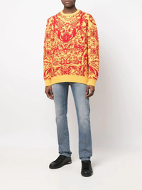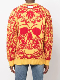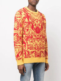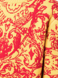 intarsia-knit design jumper citron yellow/blood red ribbed detailing intarsia knit round neck long sleeves straight hem Made in Italy Composition Outer: Lambs Wool 100% SIZE & FIT Model measurements Height 6 ft 2 in(1.88 m) Bust/Chest 36.61 in(93 cm) Hips 35.82 in(91 cm) Waist 27.95 in(71 cm) FittingInformation Designed to be unstructured, offering a loose fit throughout Made with a heavyweight knit, this piece offers some stretch This piece fits true to size – take your usual size Washing instructions Dry Clean Only