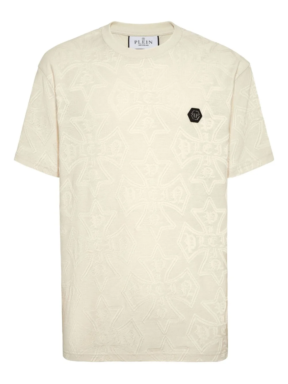 Jacquard Crest T-shirt Highlights - Beige - Jacquard fabric - Crest pattern - Short sleeves - Round neck - Logo patch Imported Composition Fabric 100% Washing instructions Read Manufacturer Guidelines