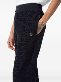 jacquard-monogram track pants Highlights - Navy blue - All-over monogram pattern - Elasticated drawstring waist - Side slit pockets - Rear patch pocket Imported Composition Cotton 100%