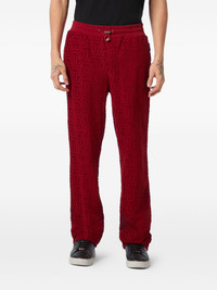 jacquard track pants Highlights - Red - Jacquard motif - Elasticated drawstring waistband - Side slit pockets - Straight leg - Rear welt pockets Imported Composition Cotton 100% Washing instructions Read Manufacturer Guidelines