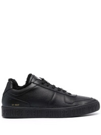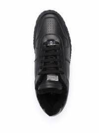 King Power low-top sneakers black leather silver-tone logo plaque tonal stitching perforated toebox round toe front lace-up fastening flatform sole Made in Italy Composition Outer: Leather 100% Sole: Rubber 100% Lining: Sheep Skin/Shearling 100% SIZE & FIT Measurement HEEL 1.18 in(3 cm) Sole height 0.78 in(2 cm)