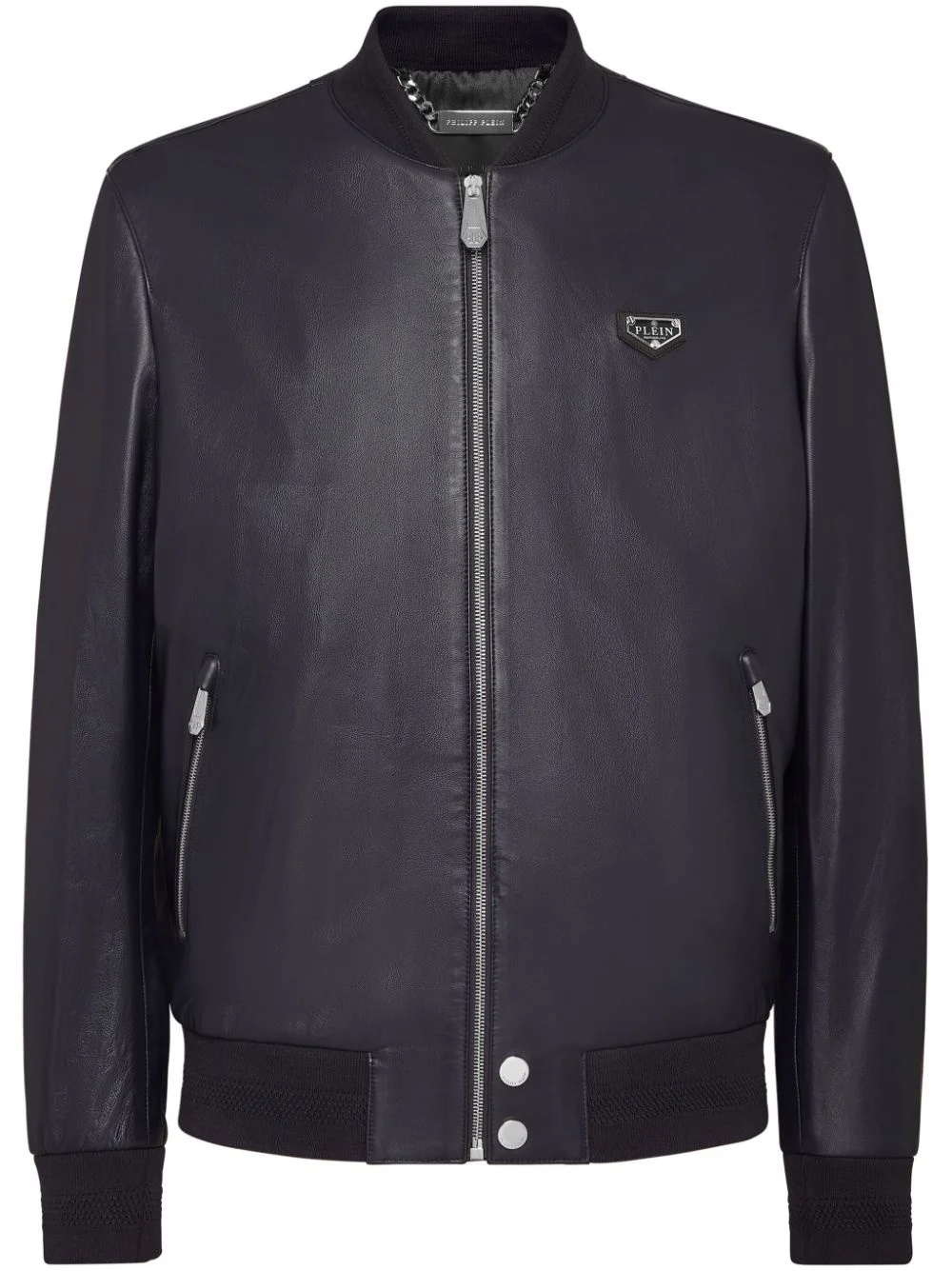 leather bomber jacket Highlights - Midnight blue - Lambskin - Front zip fastening - Baseball collar - Long sleeves - Applique logo - Two side zip-fastening pockets - Ribbed trim - Straight hem Imported Composition Outer: Lambskin 100% Lining: Polyester 100%