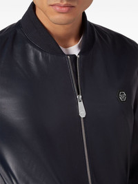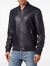 leather bomber jacket Philipp Plein's famous logo takes the focus of this bomber tote jacket. The detail appears at the chest, adding a discreet branded touch to its black leather construction. Highlights - Black - Leather - Applique logo - Stand-up collar - Front zip fastening - Two side zip-fastening pockets - Long sleeves - Straight hem Imported Composition Leather 100%