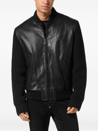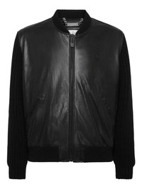 leather knitted-sleeve jacket Highlights - Black - Leather body - Knitted wool sleeves - Zip fastening - Ribbed hem - Logo detail Made in Italy Composition Fabric 100% Washing instructions Read Manufacturer Guidelines