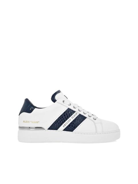 leather low-top sneakers Highlights - White - Lace-up front fastening - Round toe - Padded ankle - Logo-embellished side panels - Branded insole Made in Italy Composition Outer: Zamak 100%, Calf Leather 100% Lining: Calf Leather 100% Sole: Rubber 100%
