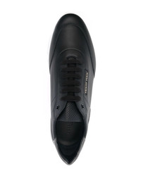 leather low-top sneakers black leather high-shine finish silver-tone logo lettering slogan print to the side perforated detailing almond toe front lace-up fastening eyelet detailing branded leather insole chunky rubber sole Made in Italy Composition Sole: Rubber 100% Lining: Calf Leather 100% Outer: Calf Leather 100% SIZE & FIT Measurement HEEL 1.57 in(4 cm) Sole height 0.98 in(2.5 cm)
