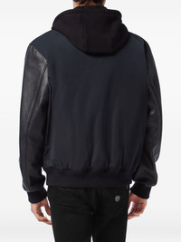 leather-sleeve hooded bomber jacket