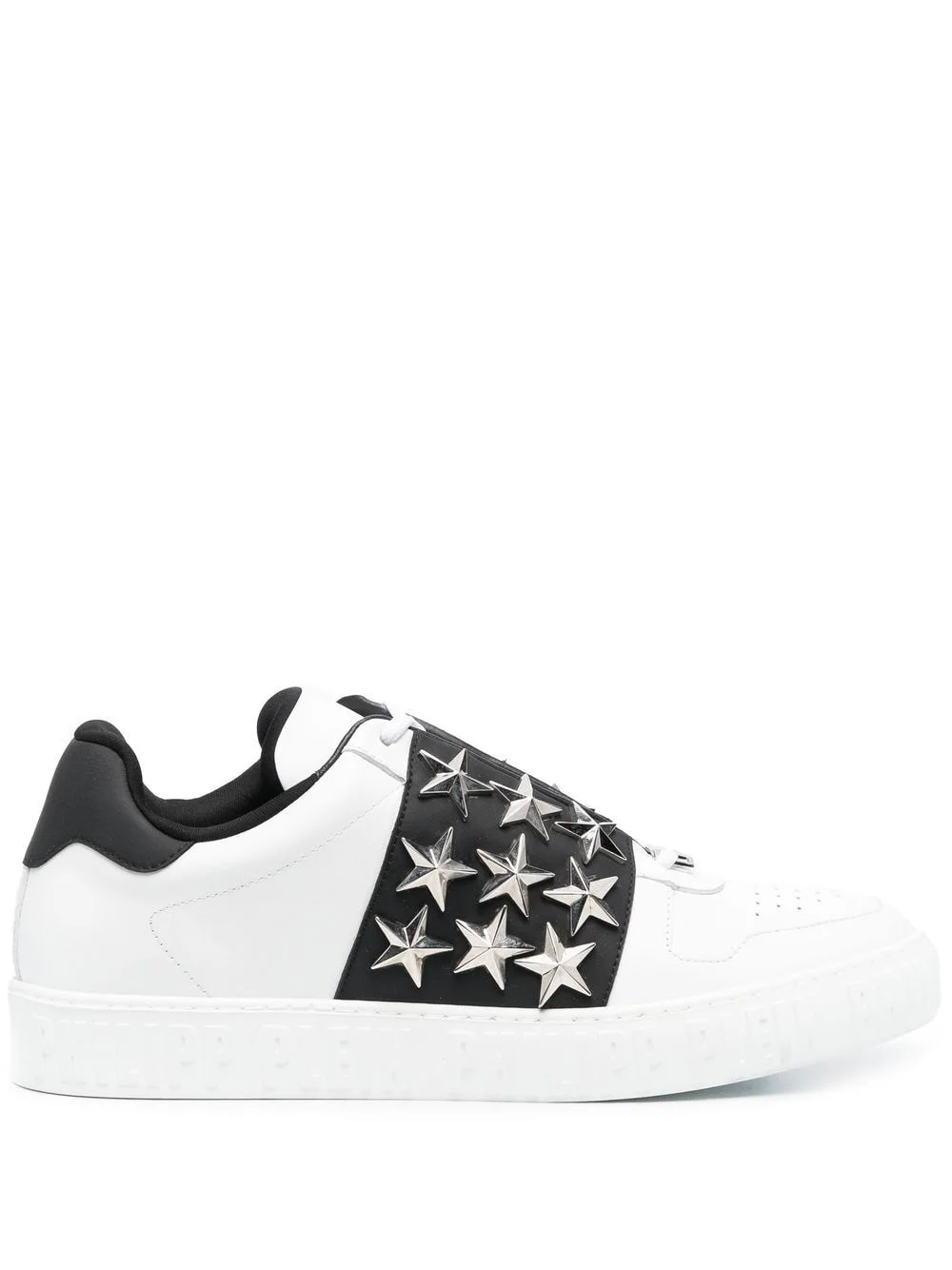 leather star studded sneakers white/black calf leather star stud detailing perforated detailing contrasting heel counter front lace-up fastening round toe flat rubber sole Made in Italy Composition Leather 100% SIZE & FIT Measurement HEEL 1.37 in(3.5 cm) Sole height 1.18 in(3 cm)