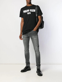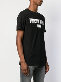 logo print T-shirt Philipp Plein is all about playful exuberance with a darker, rock’n’roll edge. Update your day to day tee's with the addition of this black cotton logo print T-shirt. Featuring a round neck, short sleeves and a silver-tone logo plaque. Made in Italy Composition Cotton 100% SIZE & FIT Model measurements Height 6 ft 2 in(1.89 m) Bust/Chest 36.22 in(92 cm) Hips 35.82 in(91 cm) Waist 28.74 in(73 cm) FittingInformation This piece fits true to size. We recommend you get your regular size Cut for a relaxed fit Washing instructions Hand Wash