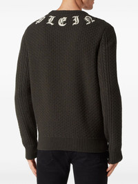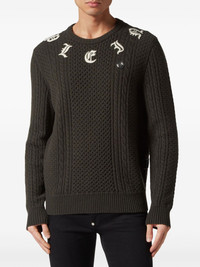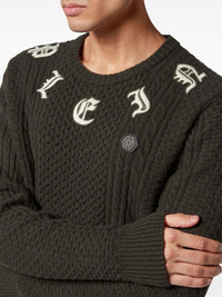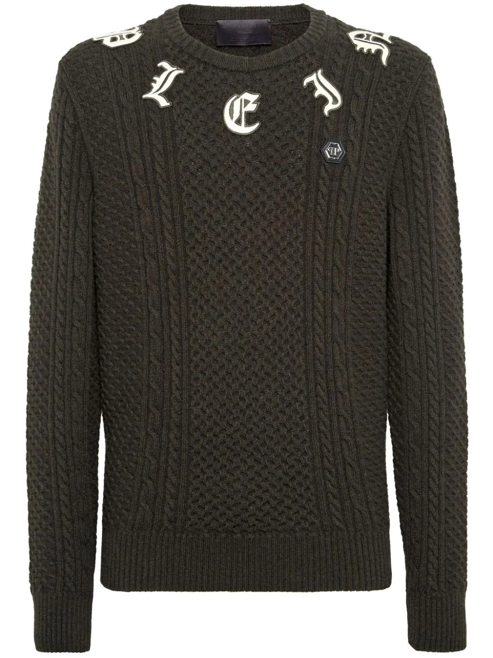 logo-applique cable-knit jumper Highlights - Dark green - Merino wool-cashmere blend - Cable knit - Ribbed-knit edge - Applique logo - Silver-tone logo plaque - Crew neck - Long sleeves - Straight hem Made in Italy Composition RWS Merino Wool 90%, Cashmere 10% Washing instructions Read Manufacturer Guidelines