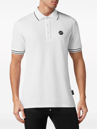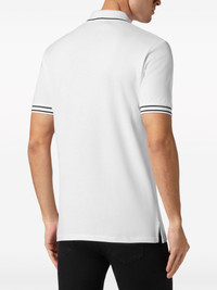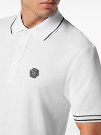 logo-appliqué cotton polo shirt Highlights - White/black - Cotton - Logo patch at the chest - Contrasting border - Polo collar - Front button placket - Short sleeves - Short side slits - Straight hem Imported Composition Cotton 100%