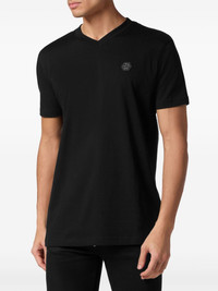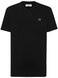 logo-applique cotton T-shirt Highlights - Black - Cotton - Applique logo - V-neck - Short sleeves - Straight hem Made in Italy Composition Cotton 100%