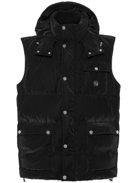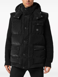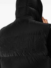 logo-applique hooded puffer gilet Highlights - Black - Padded design - Applique logo - Funnel neck - Classic hood - Front press-stud fastening - Sleeveless - Front flap pockets - Straight hem Imported Composition Outer: Polyester 100% Lining: Polyester 100% Filling: Goose Down 90%, Goose Feather 10% Washing instructions Read Manufacturer Guidelines