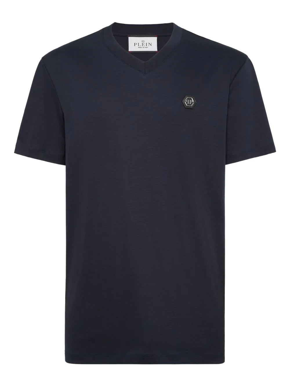 logo-applique V-neck T-shirt Highlights - Navy blue - V-neck - Short sleeves - Logo applique - Cotton Made in Italy Composition Cotton 100% Washing instructions Read Manufacturer Guidelines
