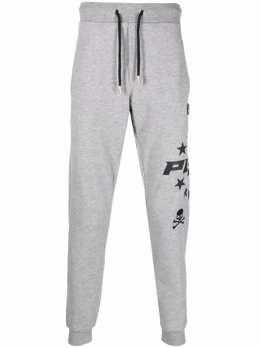 logo drawstring track pants grey/black cotton-blend logo print to the front drawstring fastening two side slit pockets rear welt pocket Imported Composition Polyester 50%, Cotton 50% SIZE & FIT Model measurements Height 6 ft 1 in(1.86 m) Bust/Chest 38.58 in(98 cm) Hips 38.18 in(97 cm) Waist 27.95 in(71 cm) FittingInformation This piece fits true to size. We recommend you get your regular size Cut for a slim fit Made with a mid-weight fabric Washing instructions Hand Wash
