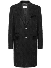 logo-embellished peak-lapels single-breasted coat Highlights - Black - Virgin wool blend - Cotton - Logo embellishment - Peak lapels - Front button fastening - Long sleeves - Two front flap pockets - Mid-length - Central rear vent - Straight hem Made in Italy Composition Outer: glass 100%, Virgin Wool 70%, Polyamide 20%, Cashmere 10% Lining: Cotton 100%, Viscose 51%, Acetate 49%