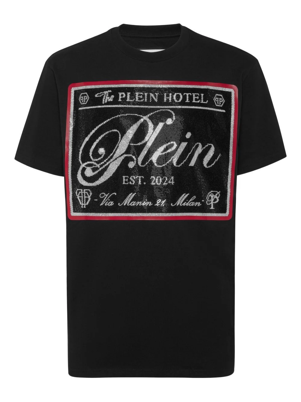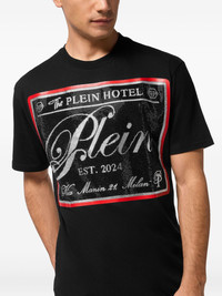 logo-embellished T-shirt Highlights - Black - Front logo print - Rounded neckline - Short sleeves - Ribbed collar - Tonal stitching Imported Composition Cotton 100%, glass 100% Washing instructions Read Manufacturer Guidelines