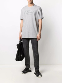 logo-embroidered cotton T-shirt heather-grey stretch-cotton embroidered logo round neck short sleeves straight hem Imported Composition Cotton 95%, Spandex/Elastane 5% SIZE & FIT Model measurements Height 6 ft 2 in(1.89 m) Bust/Chest 37.79 in(96 cm) Hips 37 in(94 cm) Waist 29.92 in(76 cm) FittingInformation This piece fits true to size. We recommend you get your regular size Cut for a relaxed fit Made with a mid-weight stretch fabric Washing instructions Hand Wash