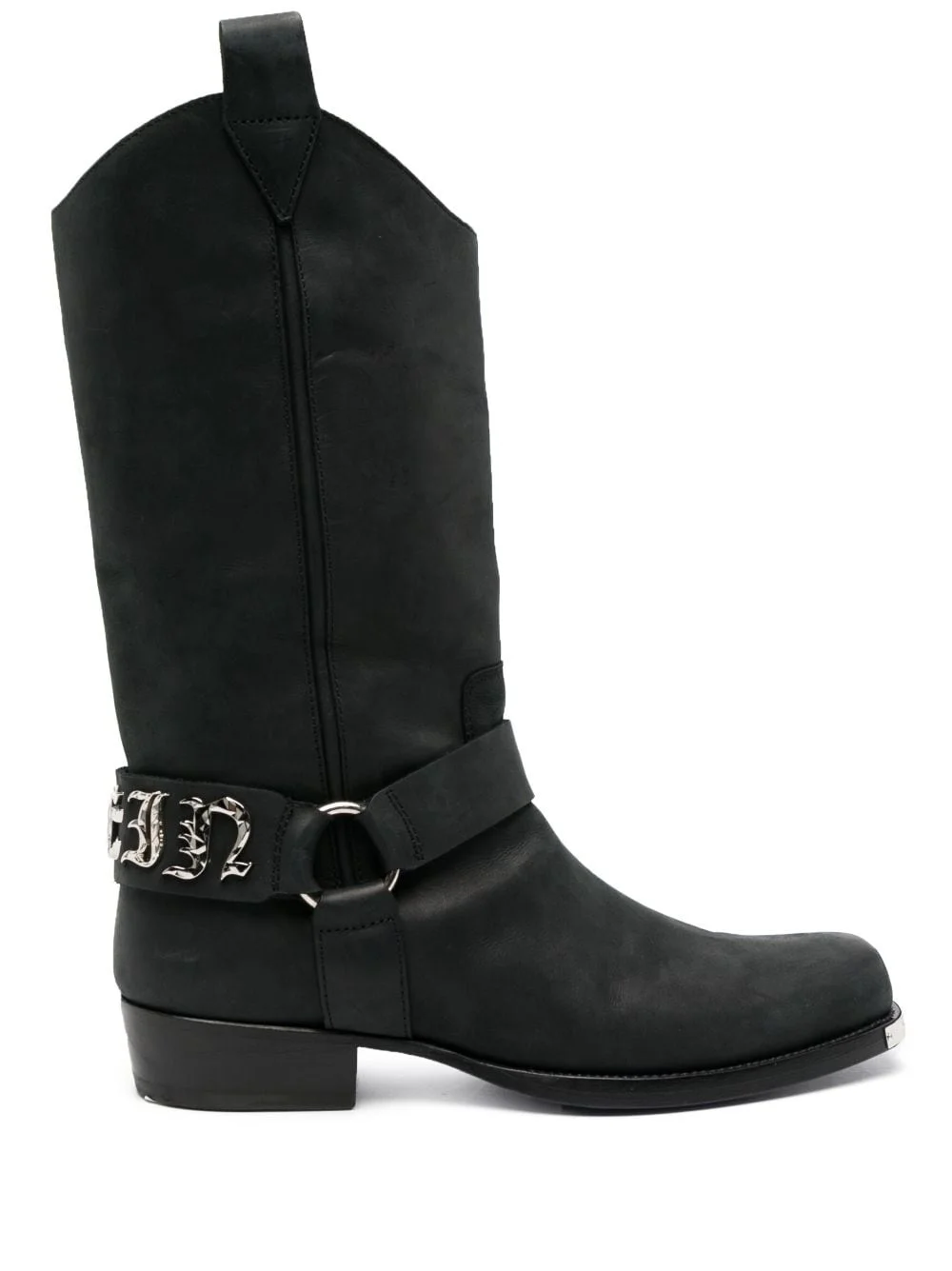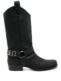 logo-lettering leather boots Highlights - Black - Calf leather - Silver-tone logo lettering - Silver-tone hardware - Double pull-tab at the opening - Panelled design - Round toe - Slip-on style - Flat sole Made in Italy Composition Sole: Calf Leather 100% Lining: Calf Leather 100% Outer: Calf Leather 100% SIZE & FIT Measurement CIRCUMFERENCE 15.35 in(39 cm) HEEL 1.37 in(3.5 cm) HEIGHT 11.02 in(28 cm) Sole height 0.39 in(1 cm)