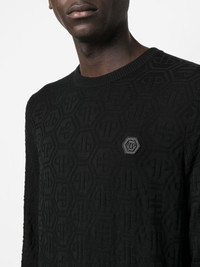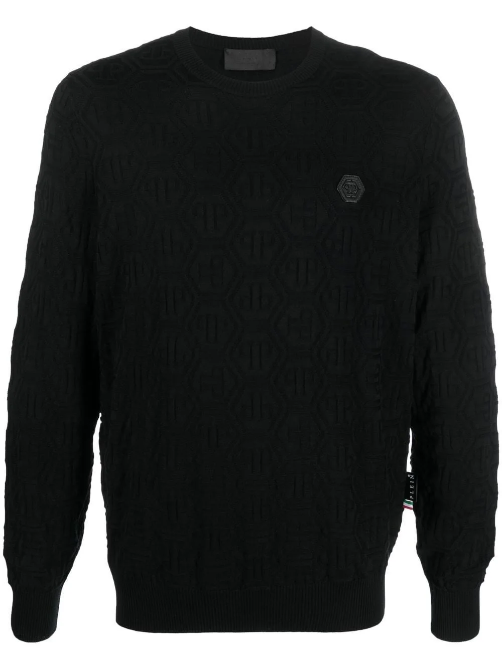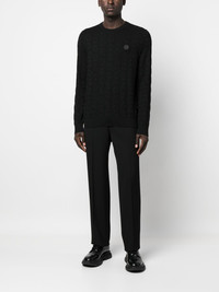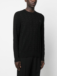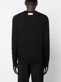 logo-patch crew neck jumper black wool-silk blend monogram pattern logo patch to the front crew neck long sleeves ribbed hem Made in Italy Composition Silk 50%, Wool 50% SIZE & FIT Model measurements Height 6 ft 2 in(1.87 m) Bust/Chest 36.41 in(92.5 cm) Hips 37 in(94 cm) Waist 29.52 in(75 cm) FittingInformation This piece fits true to size. We recommend you get your regular size Cut for a slim fit Made with a mid-weight fabric Washing instructions Dry Clean Only