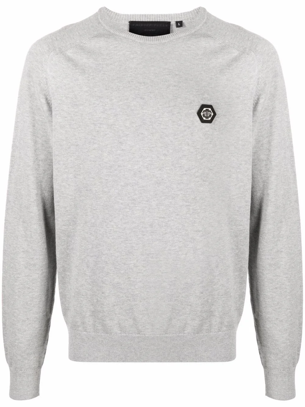 logo-patch cotton jumper grey cotton fine knit logo patch at the chest ribbed-knit edge round neck long raglan sleeves Imported Composition Cotton 100% SIZE & FIT Model measurements Height 6 ft 2 in(1.89 m) Bust/Chest 35.43 in(90 cm) Hips 36.61 in(93 cm) Waist 28.74 in(73 cm) Washing instructions Hand Wash