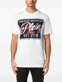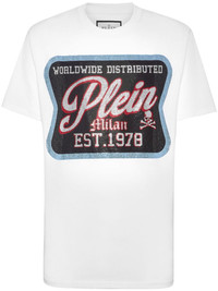 logo-patch crew-neck T-shirt Highlights - White - Cotton - Jersey texture - Crew neck - Short sleeves - Logo patch to the front - Glass crystal embellishment - Logo patch to the rear - Straight hem Imported Composition Glass Fiber 100%, Cotton 100%