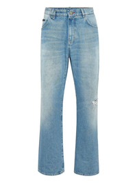 logo-patch jeans Highlights - Powder blue - Front button fastening - Classic five pockets - Belt loops - Straight leg Made in Italy Composition Lining: Polyester 65%, Cotton 35% Outer: Cotton 100%