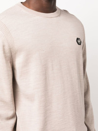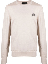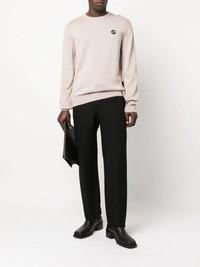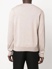 logo patch merino wool jumper light beige merino wool ribbed-knit edge logo patch at the chest crew neck long sleeves straight hem Made in Italy Composition Fabric 100% SIZE & FIT Model measurements Height 6 ft 0 in(1.84 m) Bust/Chest 35.82 in(91 cm) Hips 37 in(94 cm) Waist 28.34 in(72 cm) FittingInformation This piece fits true to size. We recommend you get your regular size Cut for a relaxed fit Made with a mid-weight fabric Washing instructions Dry Clean Only
