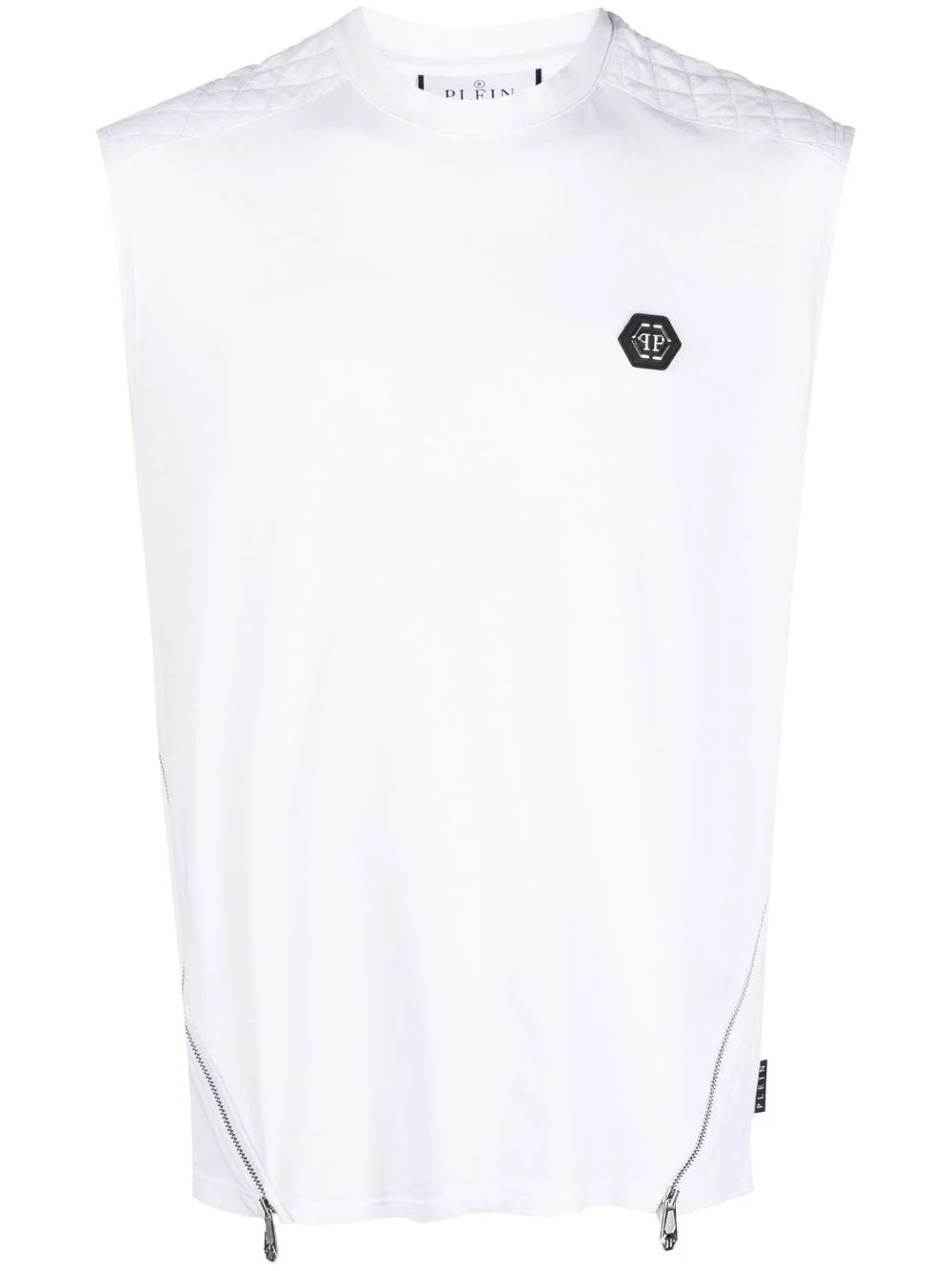 Hexagon zip-detail quilted tank top Highlights - Optical white - Logo patch at the chest - Graphic print to the rear - Decorative zip detailing - Round neck - Sleeveless - Straight hem Imported Composition Polyester 100% SIZE & FIT Model measurements Height 6 ft 2 in(1.87 m) Bust/Chest 38.18 in(97 cm) Hips 36.61 in(93 cm) Waist 29.13 in(74 cm) FittingInformation Designed for a relaxed fit, this piece allows for comfort and movement when worn Made from a midweight non-stretch fabric, this piece offers minimal elasticity when worn This piece fits true to size – take your usual size